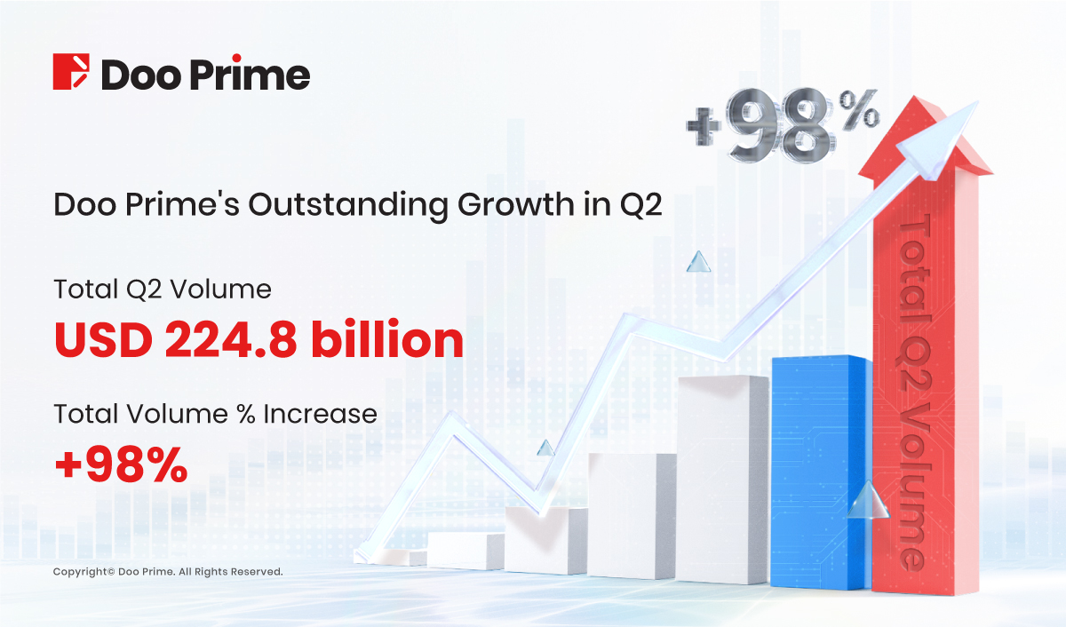 Through continuous improvement and breakthrough, Doo Prime’s trading volume in 2022 Q2 reached USD 224.8 billion, a significant increase of 98% from the figure in Q1, which was USD113.3 billion.