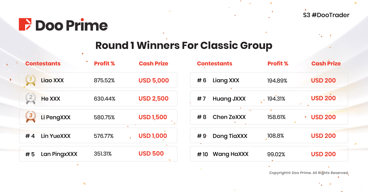 We would like to congratulate all the winners of the first round and look forward to the next round of the competition to witness the birth of a master trader!