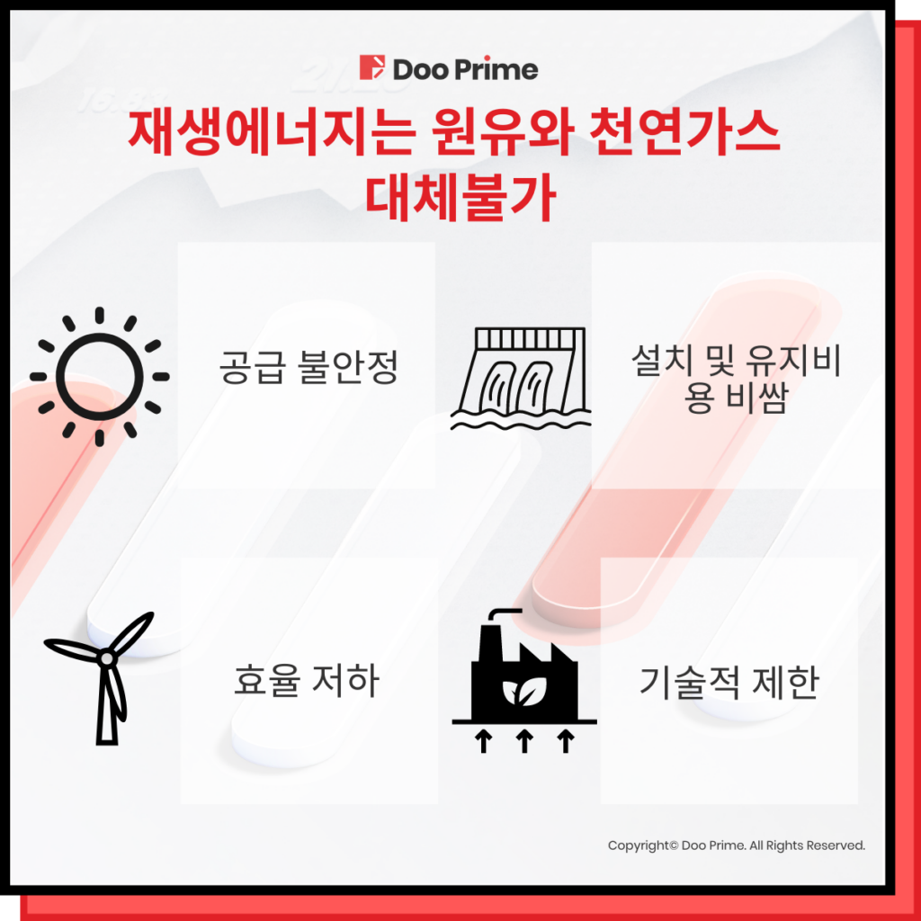 현재 원유와 천연가스는 대체할 만한 원인이 없습니다.