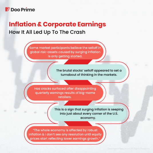 U.S. stocks hit their darkest day on 18th May 2022 as Dow plummeted more than 1,100 points, posting its biggest drop in nearly two years and it continued to fall on 19th May 2022 by more than 400 points or 1.36%.