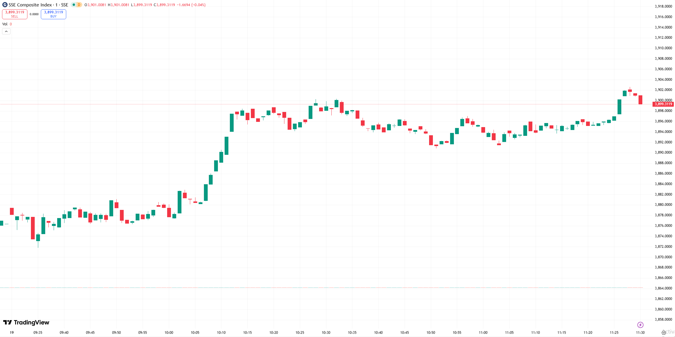 Mainland China equities advanced at midday, with broad-based gains across major indices. The Shanghai Composite rose 0.59% to 3,899.31, the Shenzhen Component climbed 0.93% to 13,175.13, and the ChiNext Index added 0.99% to 3,137.73. The STAR 50 Index gained 0.69% to 1,314.99.