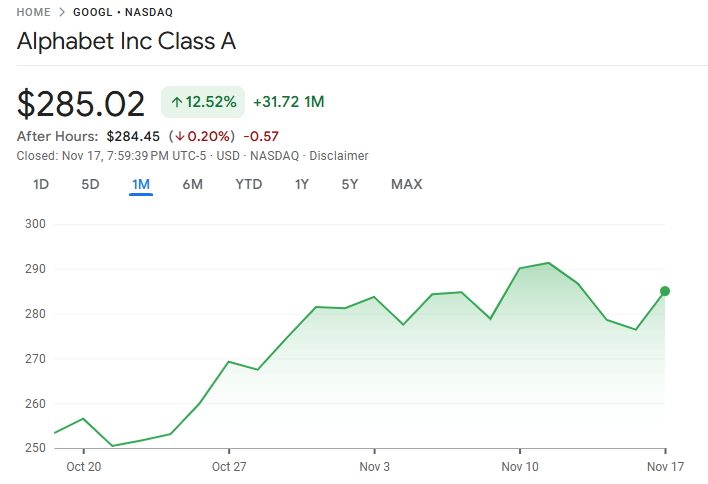 11 月 17 日美股开盘后,谷歌母公司 Alphabet 股价上涨 5.5%,市值首次突破 3.5 万亿美元,再创历史新高。根据最新披露,伯克希尔·哈撒韦在第三季度斥资 49.3 亿美元买入 Alphabet 股票,使其跻身该机构前十大美股持仓。市场普遍认为,巴菲特此举代表其认可谷歌在人工智能战略及稳健盈利方面的长期潜力。