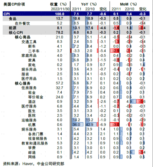 此外,核心 CPI 的重要构成部分、贡献三分之一 CPI 的住房指数 11 月环比增长 0.6%,低于 10 月增速 0.8%,为四个月内最低增速,同比涨幅达到 7.1%。
