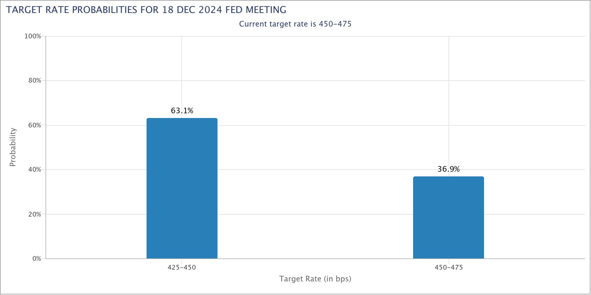 会议纪要公布后,金融市场小幅增加了对 12 月降息的押注,并维持此前对明年降息步伐将放缓的押注不变,预计到年中仅会降息一次。此外,交易员们已开始减少对美联储 2025 年降息的预期。