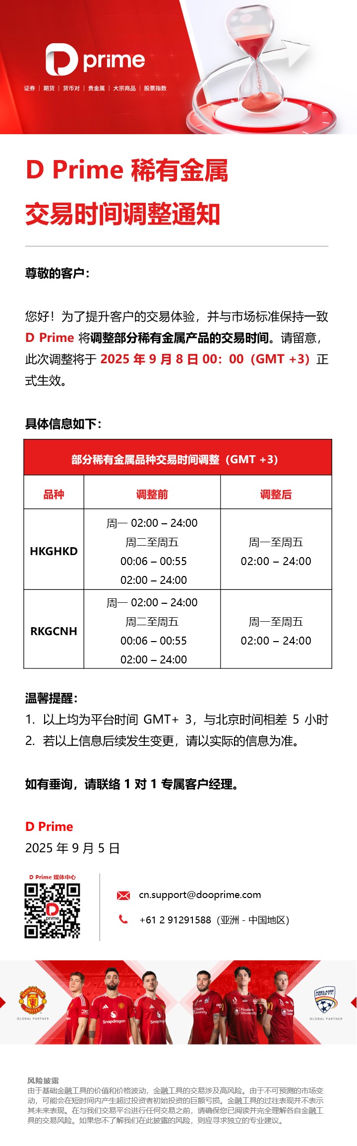 D Prime 稀有金属交易时间调整通知
