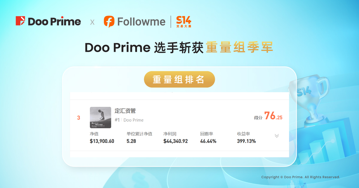 FOLLOWME S14 交易大赛收官,Doo Prime 选手收益率超 1,400%!