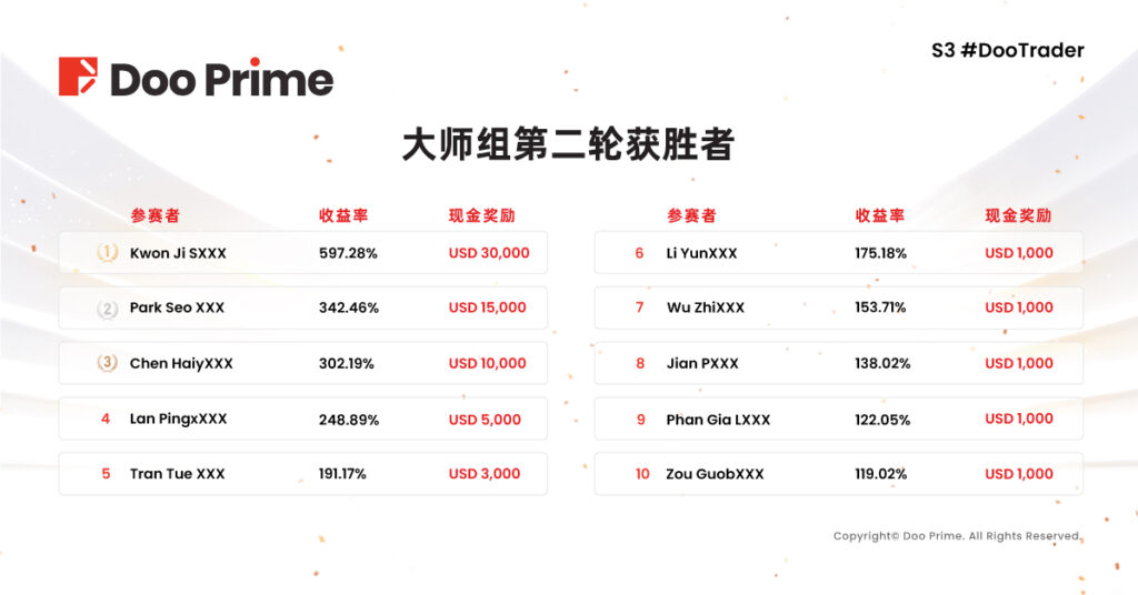 如果您错过了今年的比赛也不必遗憾,让我们共同期盼明年新一届大赛的到来,相信 Doo Prime 定会带来更加完备的赛事和丰富的奖励,一起携手创造新的交易奇迹。此外,Doo Prime 将陆续推出 S3 #DooTrader 交易大赛优秀选手专访实录,让各位投资高手在线分享致胜秘籍,精彩继续,敬请期待!