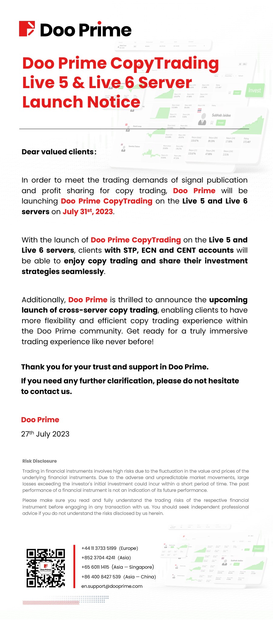 Doo Prime CopyTrading ​Live 5 & Live 6 Server Launch Notice