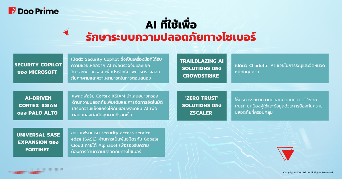 ผลกระทบของ AI ต่อการรักษาความปลอดภัยทางไซเบอร์นั้นมี 2 ด้าน แม้ว่าจะมีภัยคุกคามใหม่ๆ แต่ก็ยังมีศักยภาพที่จะเสริมกลไกการป้องกันได้อย่างมาก เพื่อตอบโต้ความเสี่ยงด้านความปลอดภัยที่เกี่ยวข้องกับ AI การพึ่งพาการป้องกันที่ขับเคลื่อนด้วย AI จึงมีความจำเป็น บทความนี้เจาะลึกถึงภัยคุกคามที่เกิดจาก AI ต่อการรักษาความปลอดภัยเครือข่าย และตรวจสอบว่าบริษัทต่างๆ เช่น Microsoft, Palo Alto, Fortinet, CrowdStrike และ Zscaler ใช้ AI เพื่อเสริมสร้างระบบป้องกันเครือข่ายได้อย่างไร