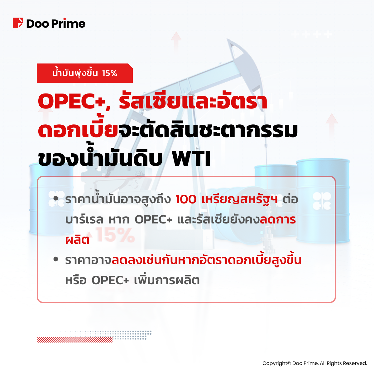 - อย่างไรก็ตาม ราคาน้ำมันอาจลดลงเช่นกันหากอัตราดอกเบี้ยที่สูงขึ้นขัดขวางการเติบโตของเศรษฐกิจโลก หรือหาก OPEC+ ตัดสินใจเพิ่มการผลิตน้ำมัน