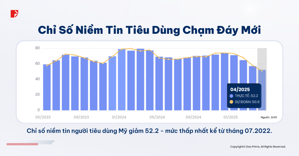 • Chỉ số niềm tin người tiêu dùng Mỹ đã giảm xuống mức 52.2 vào tháng 4 năm 2025 – mức thấp nhất kể từ tháng 7 năm 2022, từ đó báo hiệu sự do dự ngày càng tăng trong việc mua sắm tùy ý của khách hàng.