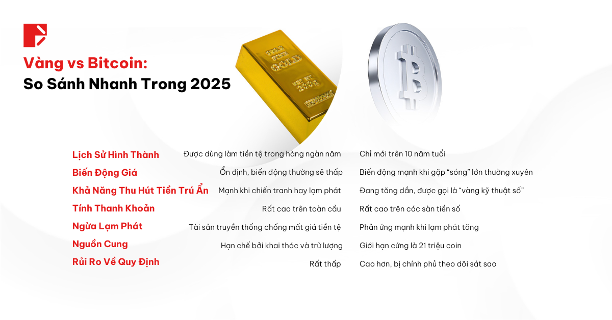 So Sánh Nhanh Giữa Vàng & Bitcoin Năm 2025